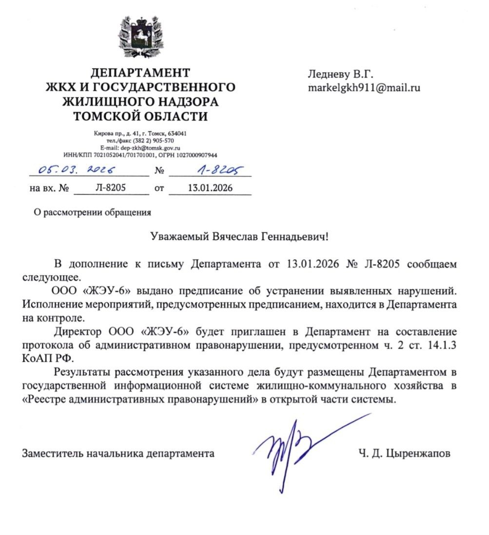 Уже 4-е приглашение директора ООО "ЖЭУ-6" "на ковер" в Департамент ЖКХ и госжилнадзора в этом году