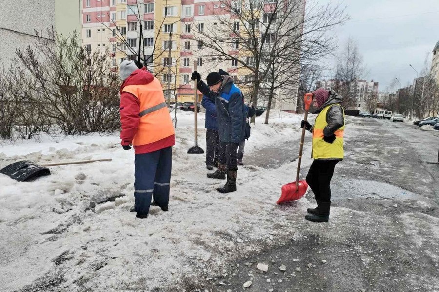Работники ГП «Центральное» трудятся на вверенной им территории и убирают скопившиеся сугробы.