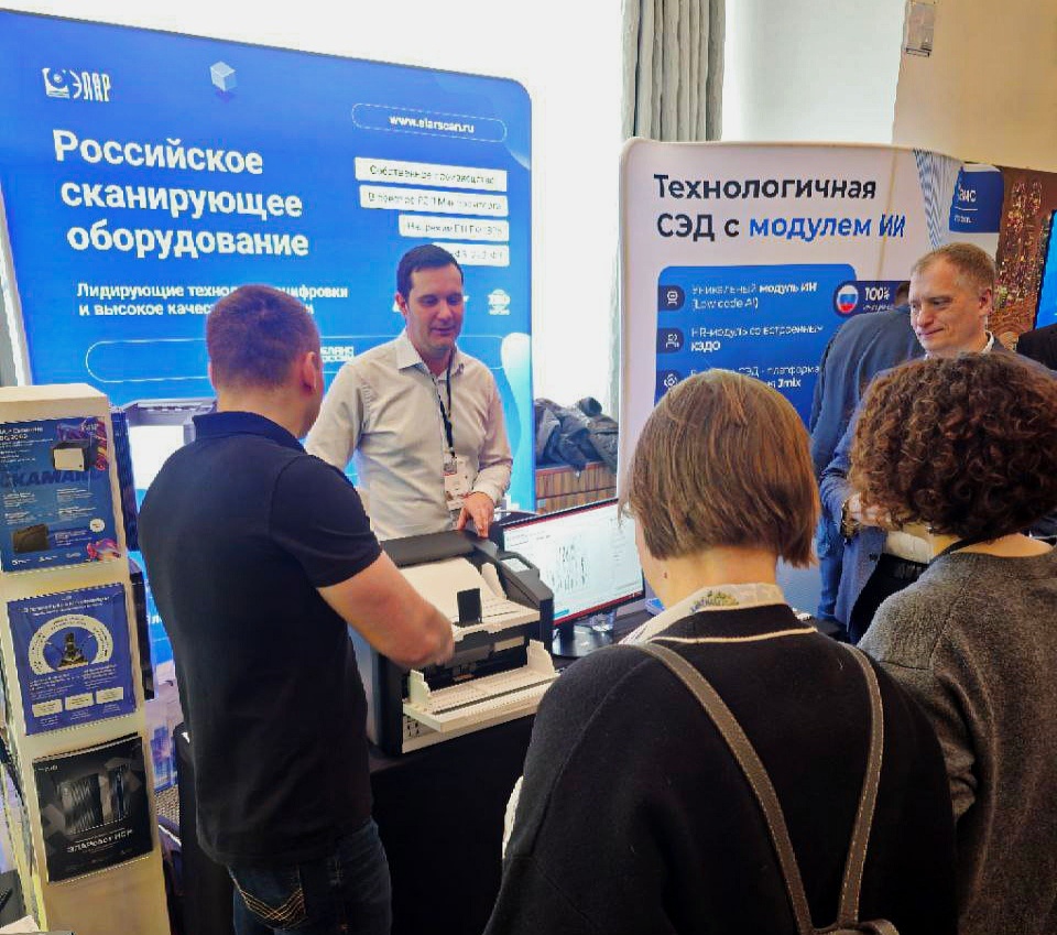На конференции специалисты ЭЛАР также представили возможности внедрения современных отечественных решений для обработки данных на основе искусственного интеллекта и обсудили с участниками мероприятия практические сценарии цифровизации документооборота и архивных массивов.