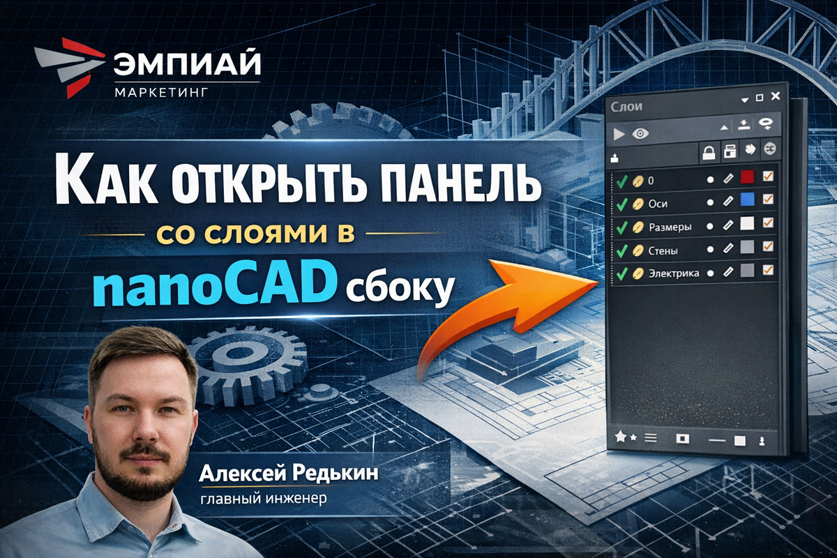 Слои помогают держать чертеж в порядке: отдельно стены, размеры, оси, оборудование, примечания. Самый удобный вариант в работе, когда панель слоев постоянно открыта сбоку, и к ней можно быстро возвращаться. Ниже короткая инструкция, как открыть Диспетчер слоев, создать новый слой и закрепить панель слева или справа. Подробную настройку рабочей среды nanoCAD смотрите в большой статье на сайте. Есть три быстрых способа открыть слои: Когда откроется функциональная панель Слои: Фото для статьи: скрин панели Слои с выделенной кнопкой Добавить и строкой нового слоя. Чтобы слои были постоянно под рукой: Фото для статьи: два скрина до и после, где видно, что панель слоев закреплена слева. Самый быстрый способ вернуть ее: снова введите СЛОЙ или LAYER в командной строке и нажмите Enter.