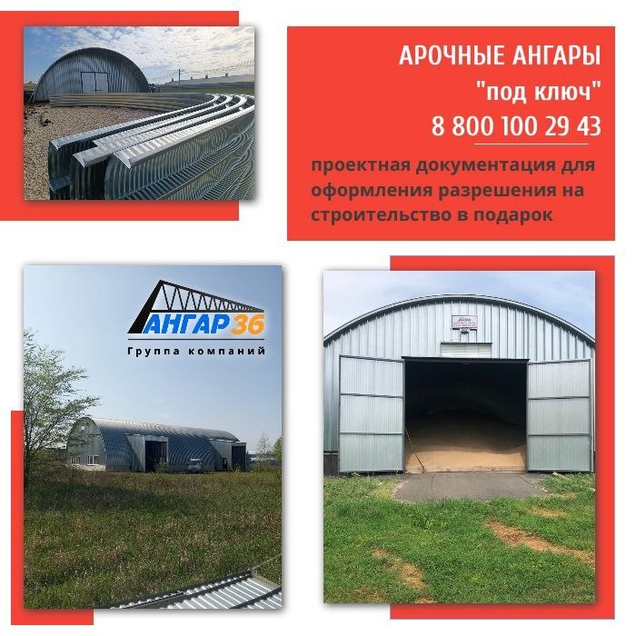 Арочный бескаркасный ангар для хранения семечки в Калужской области построить от компании Ангар 36