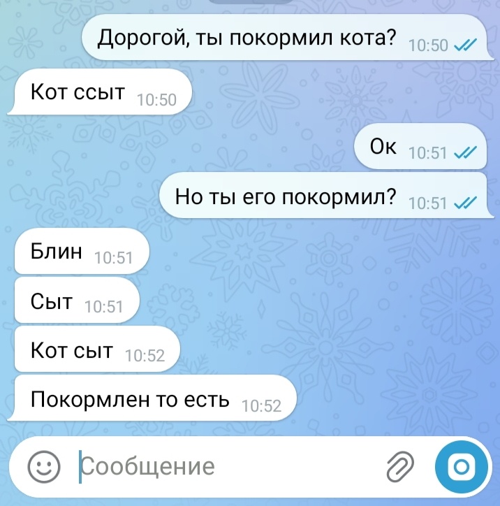 1. Можешь все забыть, но не забудь покормить кота