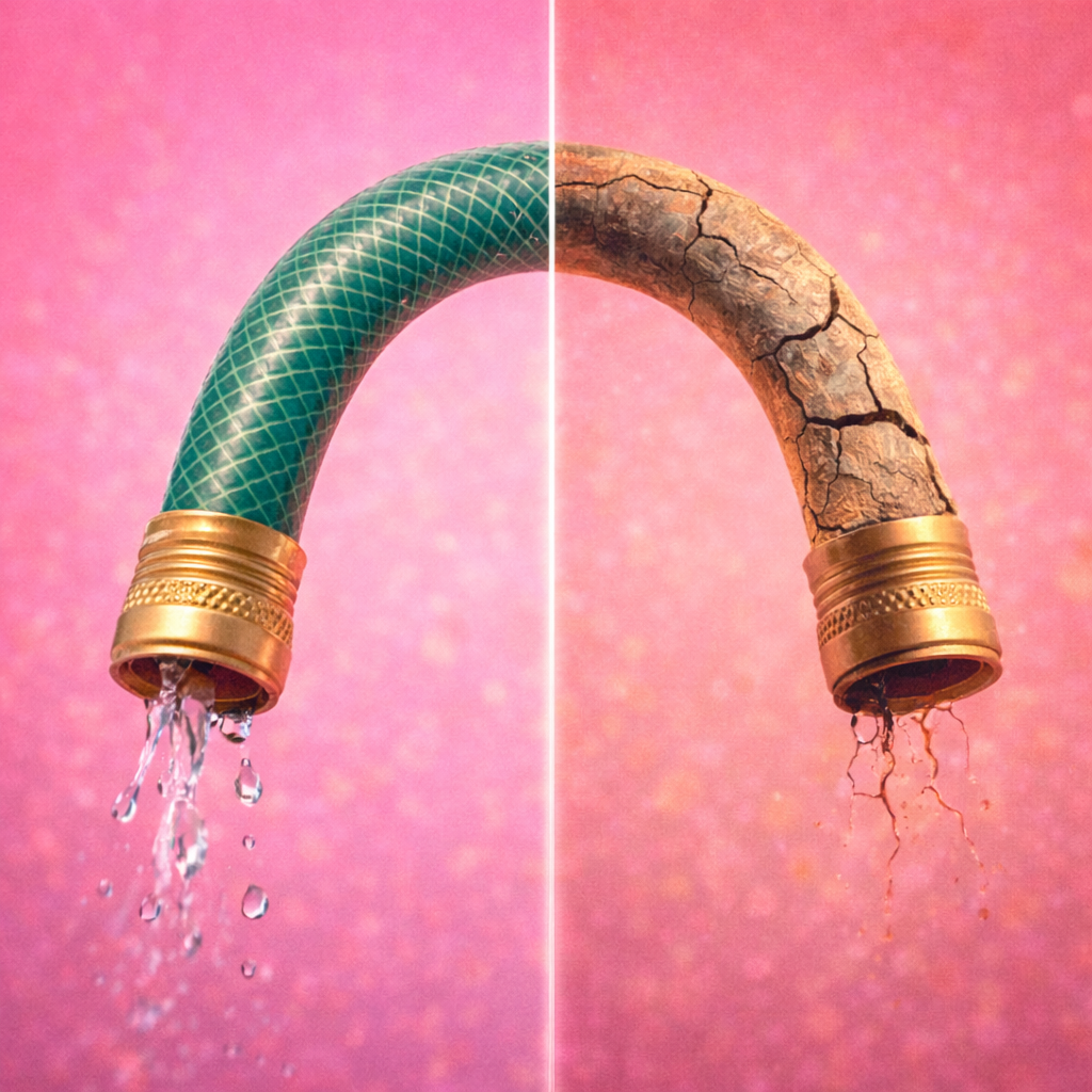 Представьте новый садовый шланг — гибкий, упругий, легко сгибается. А теперь представьте старый — задубевший, с трещинами. Примерно так же происходит и с нашими артериями.