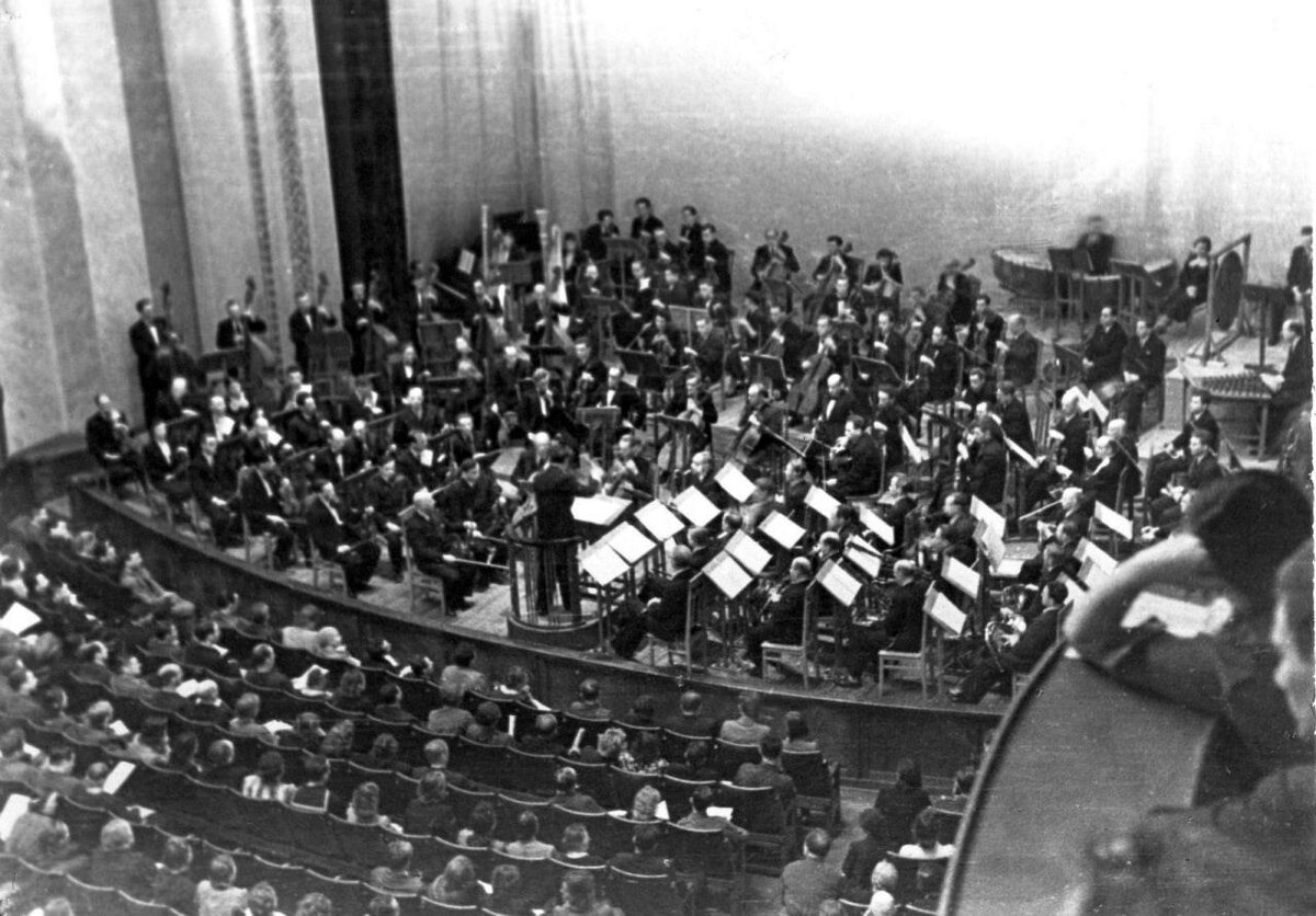 Оркестр Большого театра под управлением Самуила Самосуда исполнил произведение, которое ещё до своего завершения стало легендой. Трансляция концерта велась на весь Советский Союз, и симфония была принята слушателями как