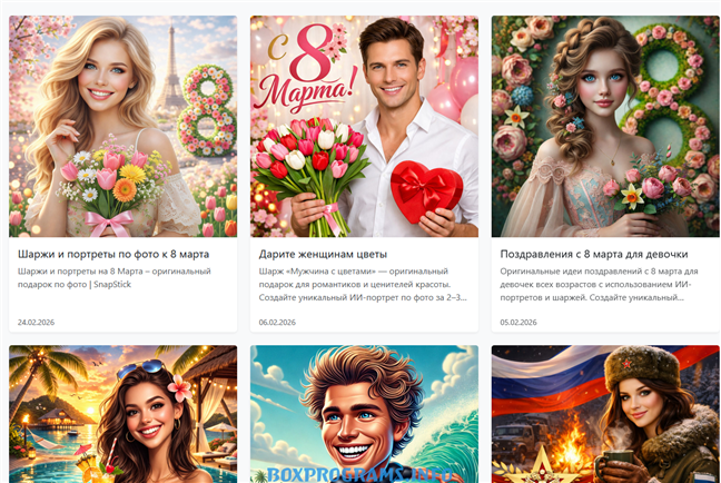В последние годы нейросети начали активно менять сферу цифрового искусства. Теперь, чтобы получить карикатуру, аватарку или художественный портрет, не нужно обращаться к художнику. Достаточно загрузить фотографию в специальный AI-сервис. Одним из таких инструментов стал Snapstick — онлайн-платформа, которая автоматически создаёт шаржи и художественные портреты из обычных фотографий всего за несколько минут. Разберёмся, как работает сервис, какие у него возможности и стоит ли его попробовать в 2026 году. Snapstick — это онлайн-сервис на базе искусственного интеллекта, который превращает фотографию человека в шарж, карикатуру или художественный портрет. Пользователь просто загружает фото, выбирает стиль — и через несколько минут получает готовое изображение. Главная идея сервиса — автоматизировать работу художника. Нейросеть анализирует черты лица и создаёт стилизованное изображение с сохранением узнаваемости человека. Процесс максимально простой и занимает буквально пару минут. В больш