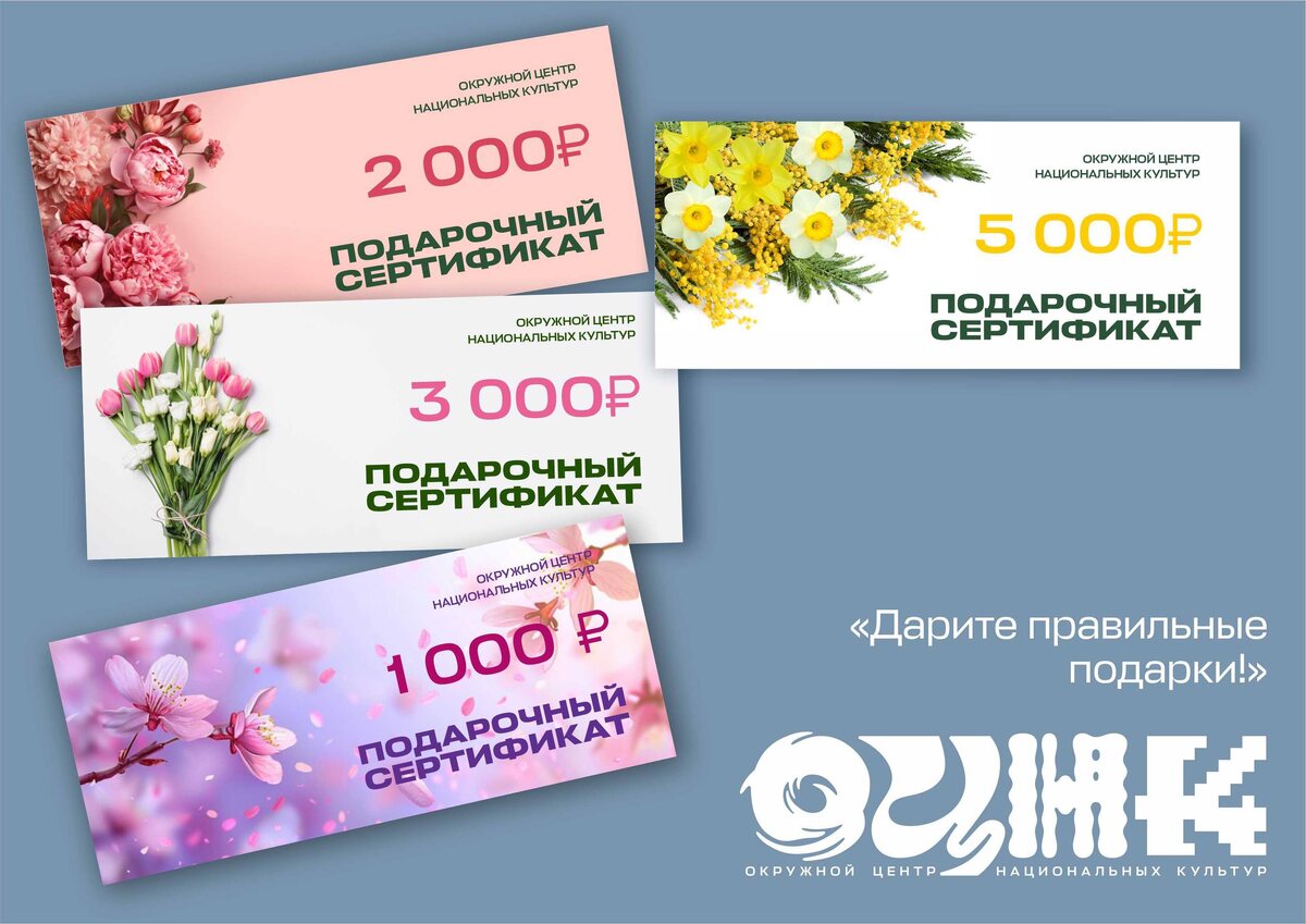 эмоции! 🌸 Не знаете, что подарить на 8 Марта? Выбирайте подарочный сертификат в Окружной Центр национальных культур — это билет в мир искусства, музыки и вдохновения. Вы сможете преподнести сюрприз как удобно: 💌 отправить онлайн https://clck.ru/3SMYhb 🎀 зайти к нам и забрать сертификат в весеннем оформлении для личного вручения в кассе Центра. Подарите весну, которая останется в сердце 💐 #ОЦНК #8Марта #ПодарокДляЖенщин #ПодарочныйСертификат