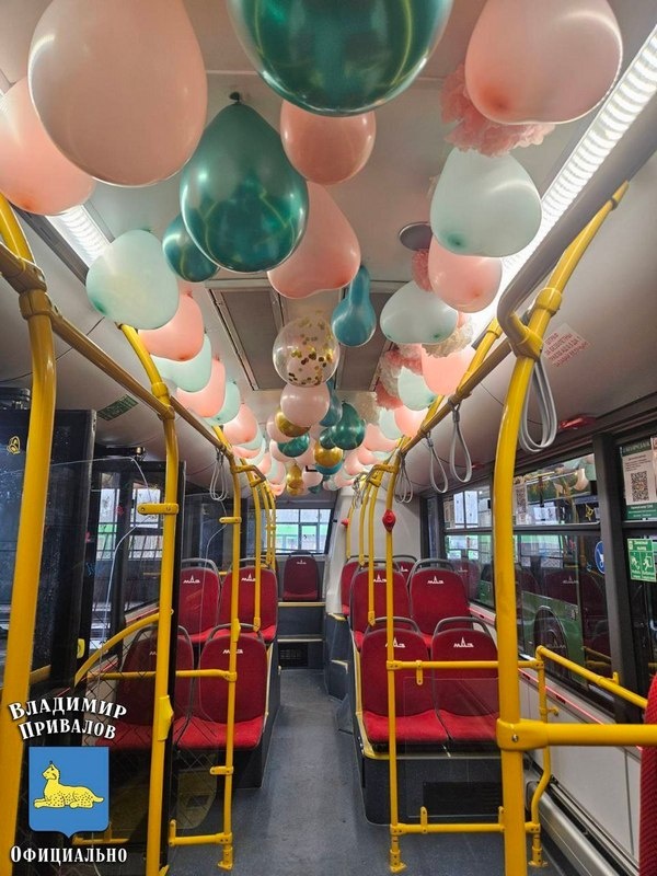 В преддверии Дня женщин в Гомеле на маршрут выезжает праздничный автобус, украшенный яркими шариками и цветочными узорами.