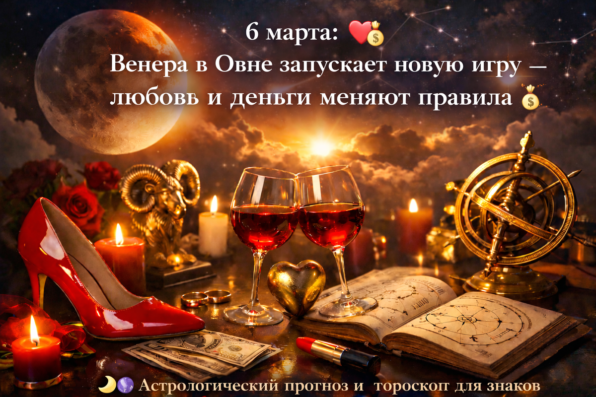 6 марта 2026 года - день, когда внутри щёлкает переключатель: «хватит тянуть». Мы всё ещё живём в послевкусии лунного затмения 3 марта, поэтому эмоции становятся честнее, а события - показательнее. И именно сегодня в игру входит новая сила: Венера переходит в Овен.