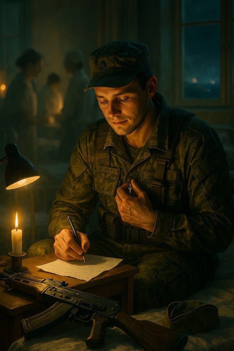 Под грохот бомб и звук орудий боец писал письмо жене, прижавшись к пулемёту крепко — все мысли там, на стороне. «Устал я сильно, нету сил, все силы, братцы, на исходе. Вчера была разведка боем, но мы справились в том походе. Не раз кого-то зацепило, кому-то ноги посекло, а я на мине подорвался — мне пол-ноги совсем снесло. Но я живой, и это важно, раны заживут, поверь, и я, окрепнув, снова встану, здоровым выйду за порог дверей. Сейчас я в госпиталь доставлен, врачи хорошие у нас. Вы только за меня молитесь Богу — Господь не оставляет нас. За нас молитесь, родные, Богу, Он нас не бросит никогда…» Закончил он писать то письмо, и слёзы потекли ручьём. Поцеловав нательный крестик, молитвы стал читать тайком: «Мы с Господом — мы всегда, хранимы Богом сквозь года, и Бог нас не оставит, не оставит никогда». 📖 Военный священник, протоиерей Евгений Бахматов #стих_сво 🌐 Vежливые и Zлые ✔️ 🤩 ЧАТ 📱 Дзен. Отблагодарить