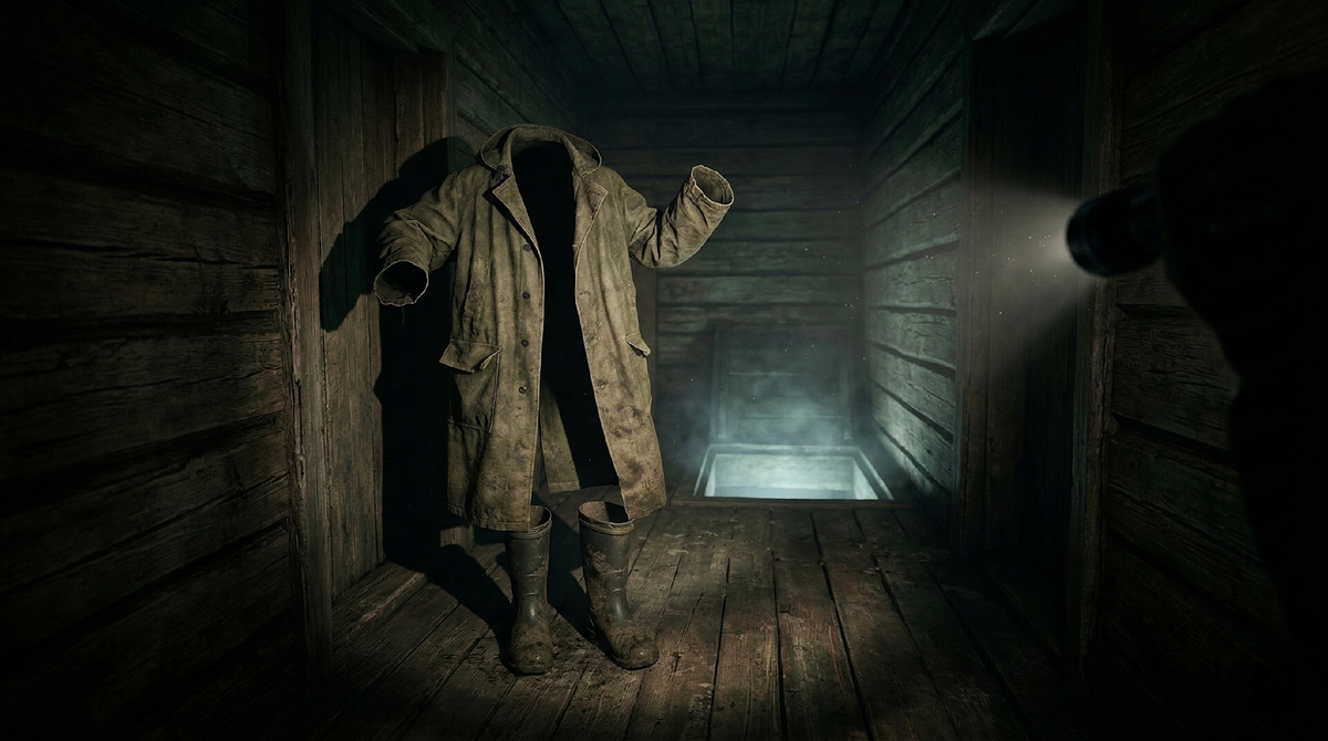 Дедовские резиновые сапоги двигались. Они не парили в воздухе. Они с глухим стуком, сминая старый линолеум, шагали по направлению ко мне. А над ними, выпрямившись в полный рост, возвышался пустой брезентовый плащ. Его полы не висели тряпкой — ткань была натянута до предела, словно внутри находилось тело, состоящее из литых мышц. Рукава были чуть приподняты, воротник стоял стойкой, но над ним зияла абсолютная, звенящая пустота.