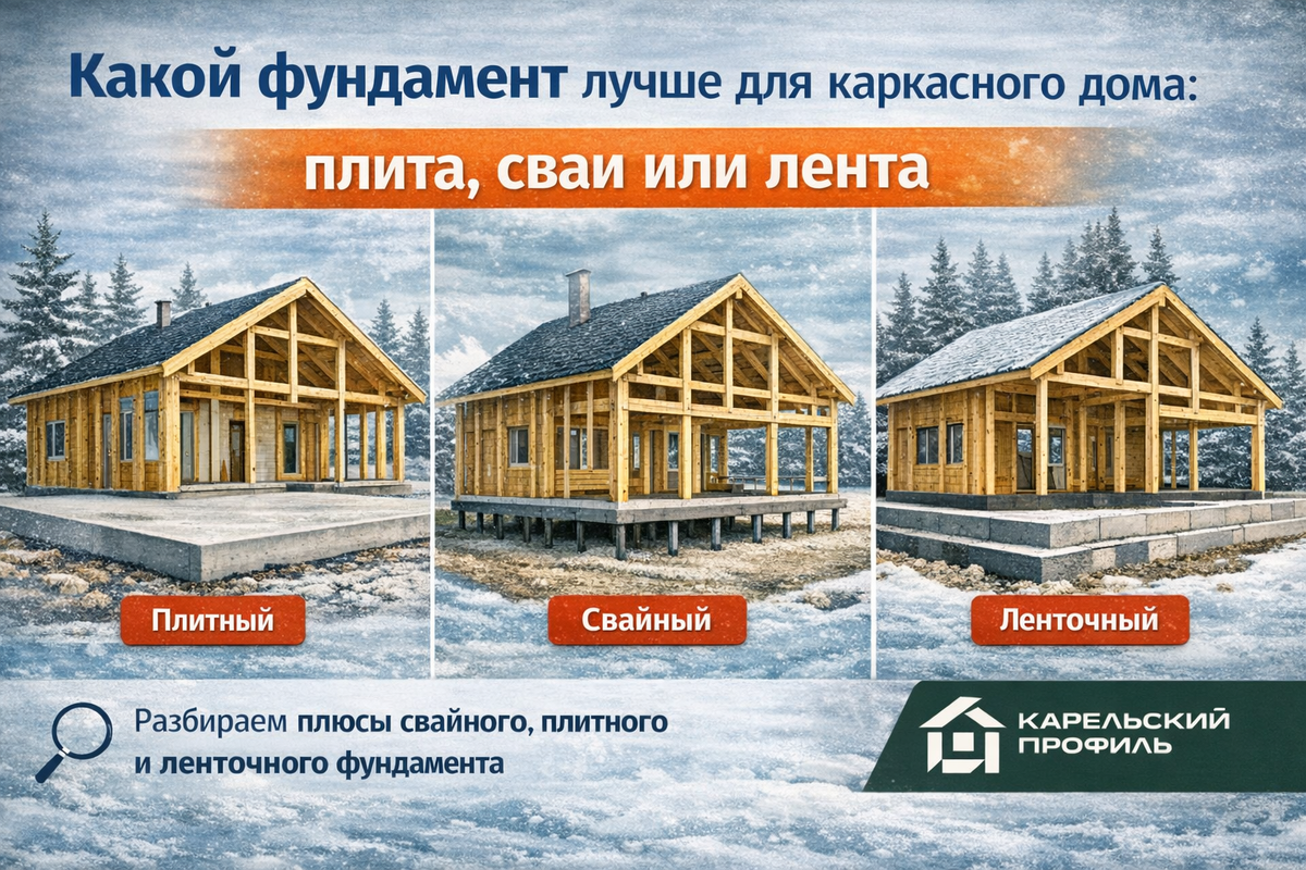 Выбор фундамента — один из первых вопросов перед строительством. Часто спрашивают: какой фундамент лучше для каркасного дома — плита, сваи или лента.