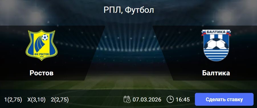 Ростов - Балтика: РПЛ 20-й тур чемпионат России (07/03/26/16:45