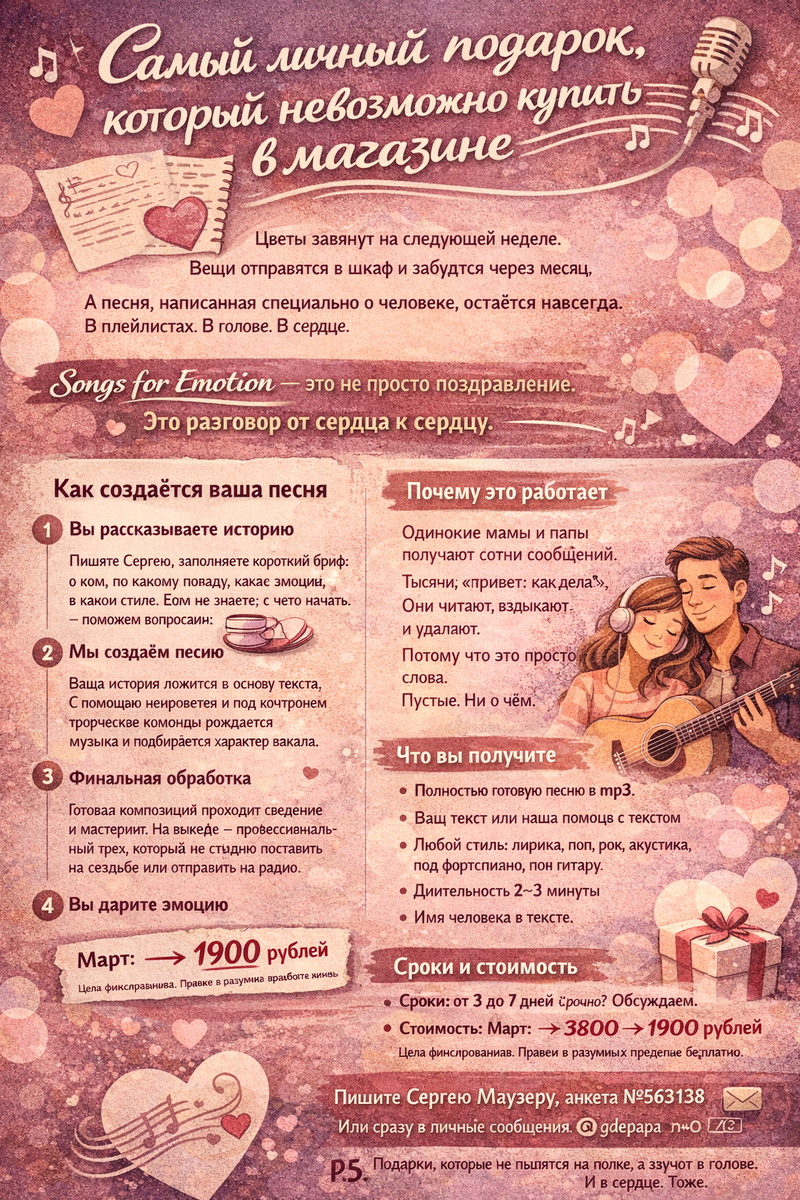А песня, написанная специально о человеке, остаётся навсегда. В плейлистах. В голове. В сердце. Songs for Emotion — это не просто поздравление.