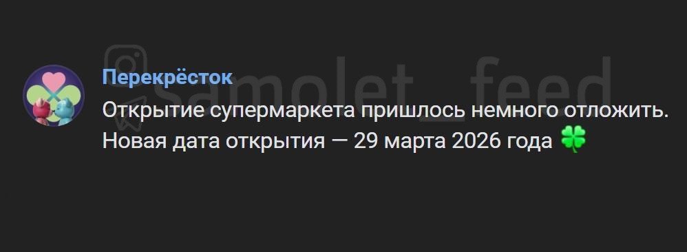 Открытие ТРЦ "Краски" снова перенесли. Об этом сообщил магазин "Перекресток". Дата открытия 29 марта 2026. ________ Присылать новость @mstislavz 👉 Обсудить в чате ЖК 👉 Подписаться на канал 📲 Мы в MAX