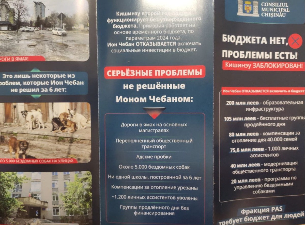 Вот такие листовки раздали присутствующим мунсоветники PAS, когда сегодня ворвались в зал, где в это время сотрудники примарии пытались провести дебаты по проекту Плана городской мобильности 📸Фото от подписчика @eNewsmd.online