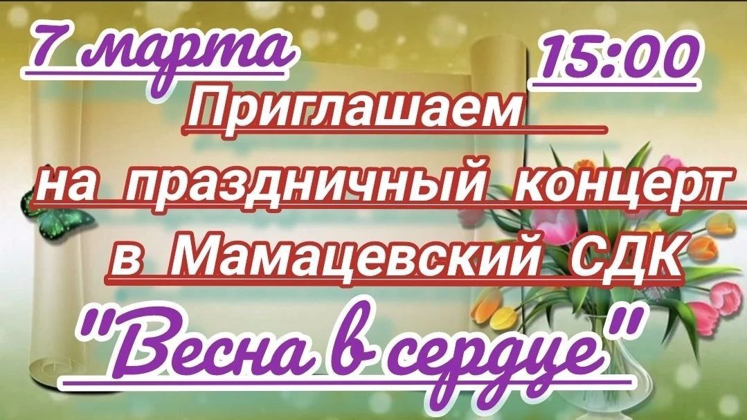 Милые наши женщины, дорогие наши красавицы, уважаемые жители, вот и наступила долгожданная весна, а с ней и 8 Марта! Приглашаем вас вместе