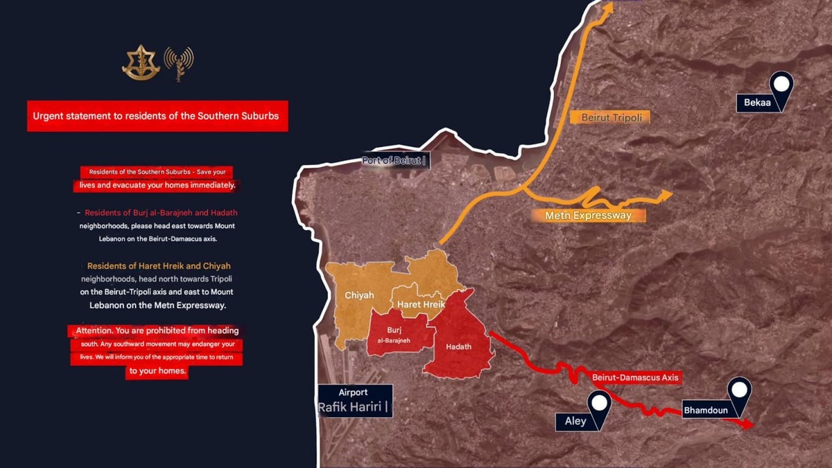 IDF issues widespread evacuation warning for Dahieh, southern Beruit