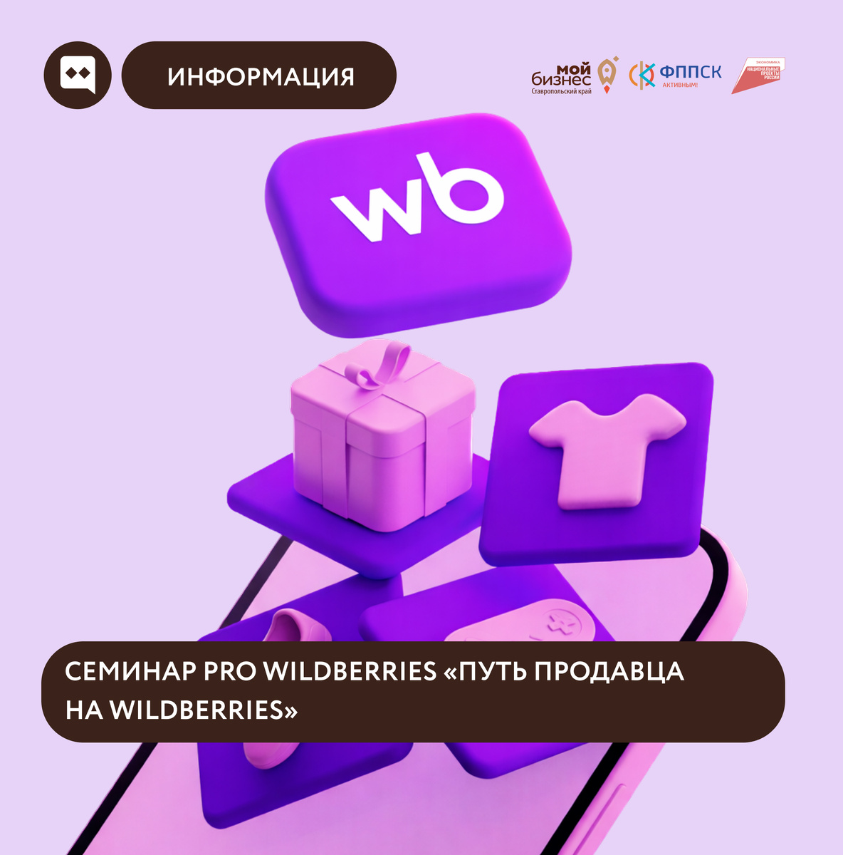 Дата: 1 апреля Время: 11:30-14:00 Место мероприятия: г. Ставрополь, ул. Голенева, 73а, центр «Мой бизнес» 1 апреля с 11:30-14:00 состоится семинар PRO Wildberries на тему: «Путь продавца на Wildberries» Спикеры: Алан Бораев - Спикер центра развития и поддержки бизнеса PRO WB, RWB Целевая аудитория: Семинар будет полезен и для новичков, и для тех, кто уже работает с нами: