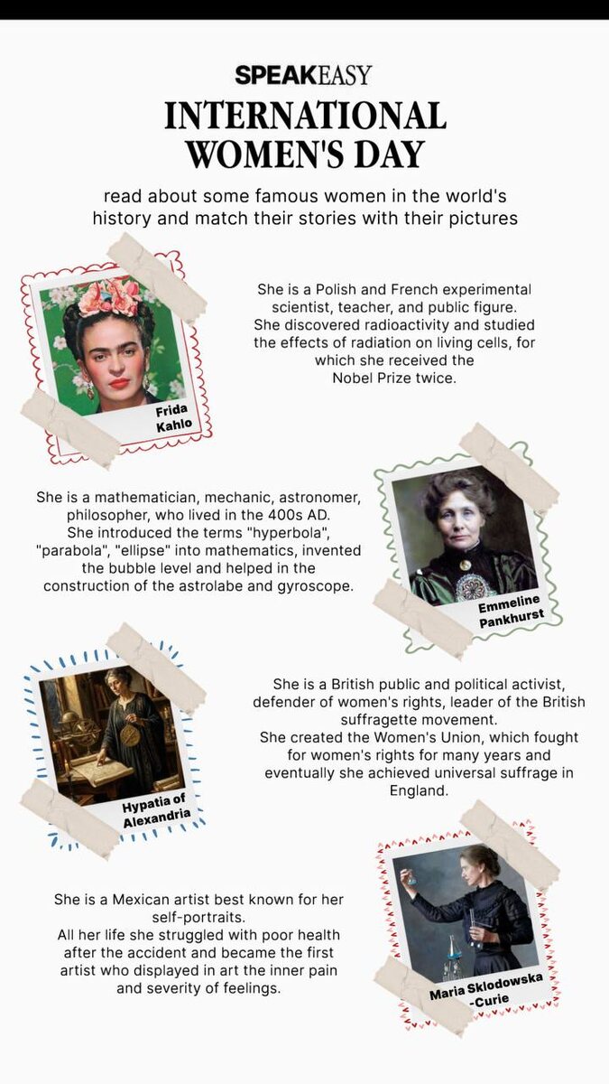 действительно powerful women!! задача студентов - соединить факты с фото! идеально перед 8 марта, завтра выложу ещё 2 новых🫶🏼