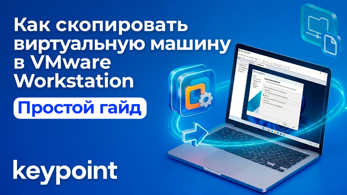 Работа с виртуальными машинами — это всегда про удобство и безопасность. Но что делать, если вам нужно создать точную копию уже настроенной системы для тестов, разработки или передачи коллеге? Многие новички пытаются искать кнопку "Clone", которая в некоторых версиях может быть недоступна или работать слишком долго. Команда Keypoint.store подготовила для вас самый надежный и быстрый способ копирования ВМ «руками», который работает безотказно во всех версиях VMware Workstation 17 и новее. Виртуальная машина — это, по сути, просто набор файлов на вашем диске. Чтобы сделать её дубликат, достаточно обычного копирования в проводнике. Теперь нам нужно зарегистрировать новую копию в самой программе, чтобы она появилась в левом боковом меню. Откроется помощник, который автоматически найдет все виртуальные диски в указанной папке. Программа найдет конфигурационный файл .vmx. Вам останется только отметить его галочкой и нажать Finish. Это критический момент. При первом включении копии VMware за