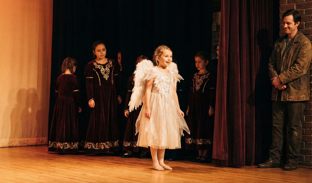 Когда дети из «заднего ряда» вышли из просторного фойе дома культуры, надев эти новые наряды, вся площадь мгновенно погрузилась в абсолютную, звенящую тишину. Это были далеко не просто обычные костюмы — это была потрясающая, ювелирно тонкая и современная дизайнерская работа, в одно мгновение превращающая простых ребят в настоящих, светлых ангелов.