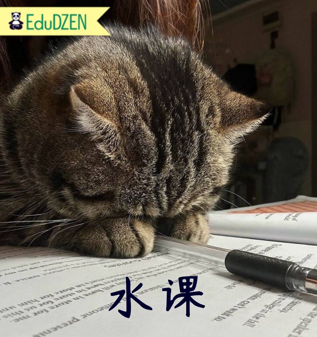 Слово происходит из студенческого сленга. «Вода» (水) в переносном смысле означает «нечто некачественное, пустое». Так называют учебные курсы, которые дают мало знаний, но их легко сдать Например: ⏺️这门课太水了,我上课睡觉都能过。 [zhè mén kè tài shuǐ le, wǒ shàng kè shuì jiào dōu néng guò] Этот предмет - полная «вода», я могу спать на парах и всё равно сдать. ⏺️这学期选了三门水课,终于有时间实习了。 [zhè xué qī xuǎn le sān mén shuǐ kè, zhōng yú yǒu shí jiān shí xí le] В этом семестре я выбрал три легких предмета, наконец-то появилось время на стажировку. Признавайтесь, если ли у вас 水课? ⭐