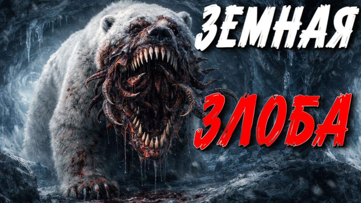 Это существо когда-то было белым медведем. Но теперь это был сам кошмар. Огромная туша, покрытая грязной, свалявшейся шерстью в багровых пятнах, медленно выплывала на нас из тени. Его морда была разорвана надвое: вместо привычной челюсти зияла чудовищная пасть, усаженная рядами острых, как бритва, клыков. Но самое страшное было внутри. Из глотки твари, извиваясь и брызгая тёмной слизью, тянулись мясные щупальца, усеянные присосками.