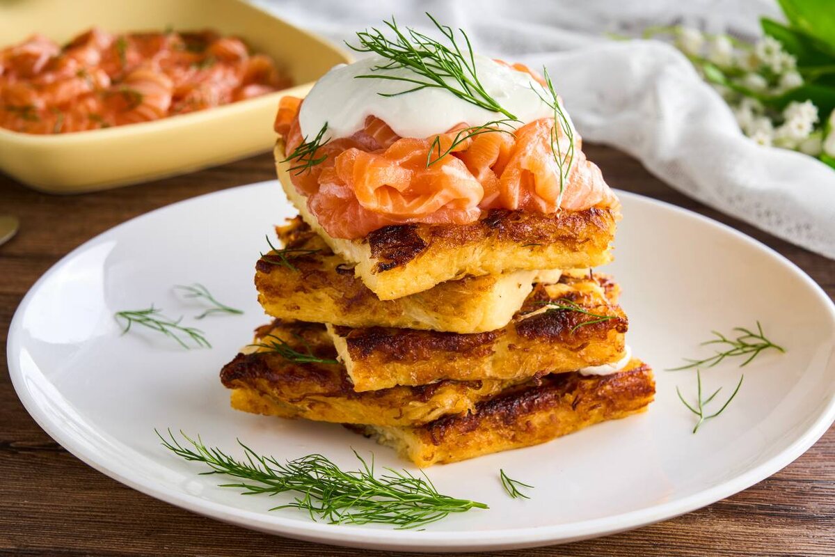 Этот прибор приготовит для вас драники, которые вы еще точно не пробовали! Программа: BBQ Рецепт приготовления: 1. Натрите картофель и лук на крупной терке и отожмите лишнюю жидкость. 2. Добавьте к картофелю яичные желтки, муку, щепотку соли и перца, перемешайте. 3. Установите чашу в Грандшеф, закройте его крышкой и выберите функцию “BBQ”, поставьте температуру на 185 градусов, а время на 20 минут. 4. В разогретую чашу налейте немного растительного масла, выложите в нее картофельную смесь и обжарьте до румяной корочки с обеих сторон. По необходимости добавьте растительное масло. 5. Нарежьте картофельные оладьи на кусочки и подавайте со сметаной и лососем. Приятного аппетита! *** Проверенными рецептами и лайфхаками делятся владельцы Грандшефа в кулинарном сообществе Телеграм. У вас еще нет Грандшефа? Откройте для себя мир готовки с наслаждением: 👉Купить на WB белый Грандшеф или черный Грандшеф