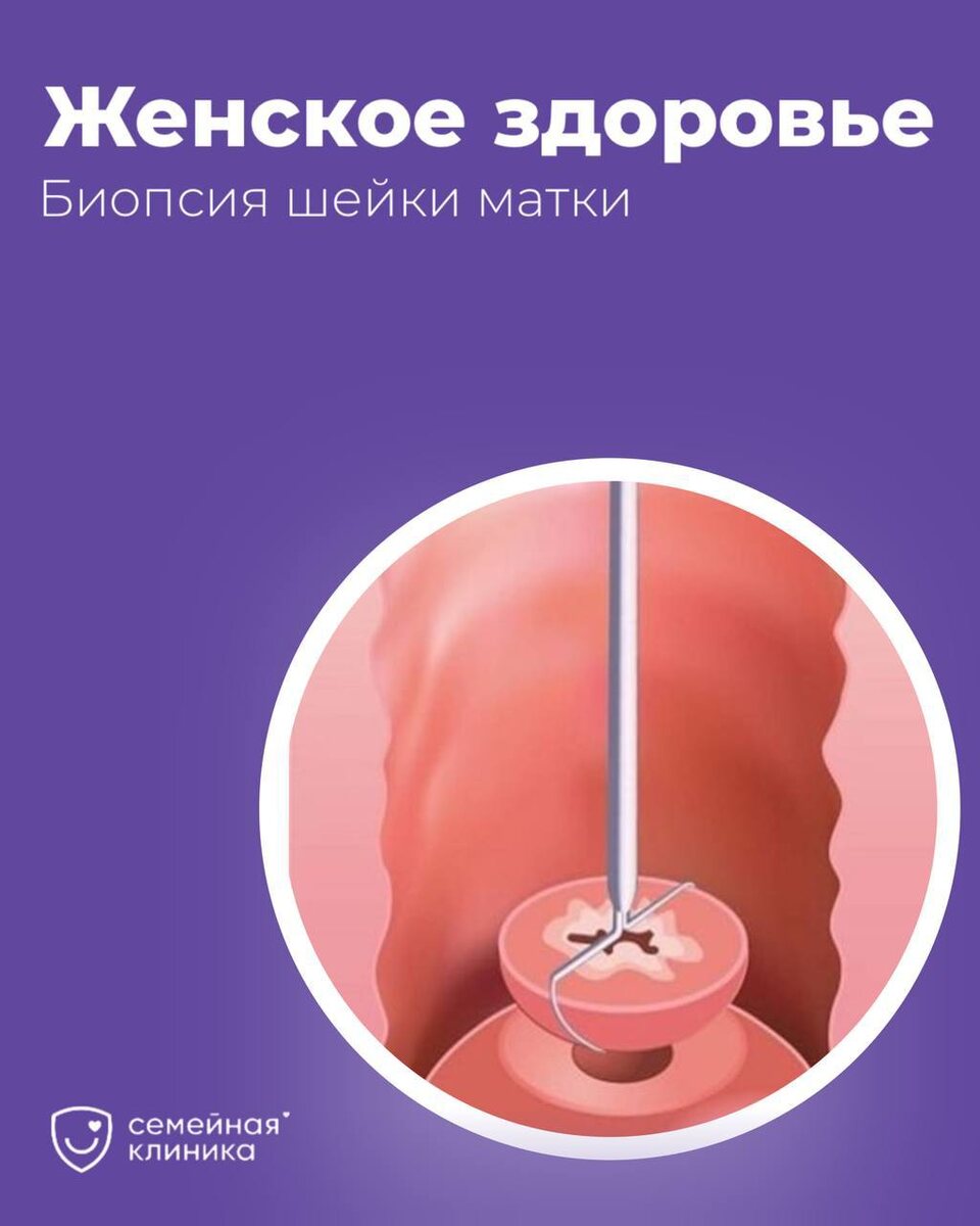 ? Биопсия шейки матки — процедура, при которой берется небольшой образец ткани для микроскопического анализа с целью выявления аномалий, таких как предраковые изменения или воспаление. 💜 Биопсия рекомендована в следующих случаях: • Наличие аномальных результатов пап-теста (цитологического исследования). • Подозрение на дисплазию (предраковые изменения) шейки матки. • Выявление вируса папилломы человека (ВПЧ) высокого риска. • Необычные симптомы, такие как кровотечения или выделения. • Мониторинг состояния после лечения предраковых изменений. В клинике «Семейная» на Московской мы используем современную технологию лазерной биопсии с помощью аппарата Bioxel CO2! Данный метод обладает рядом преимуществ: • Минимальная травматичность: лазерная биопсия обеспечивает точное и аккуратное удаление ткани, что снижает риск осложнений. • Быстрое заживление: благодаря высокой точности процедуры, восстановление проходит быстрее, и риск образования рубцов минимален. • Комфорт для пациента: процед