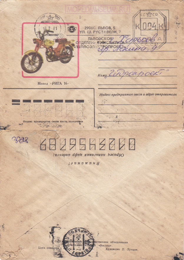 Мопед "Рига-16". Рижский мотозавод "Саркана звайгзне". Художник П. Лунцов. 1979 год.