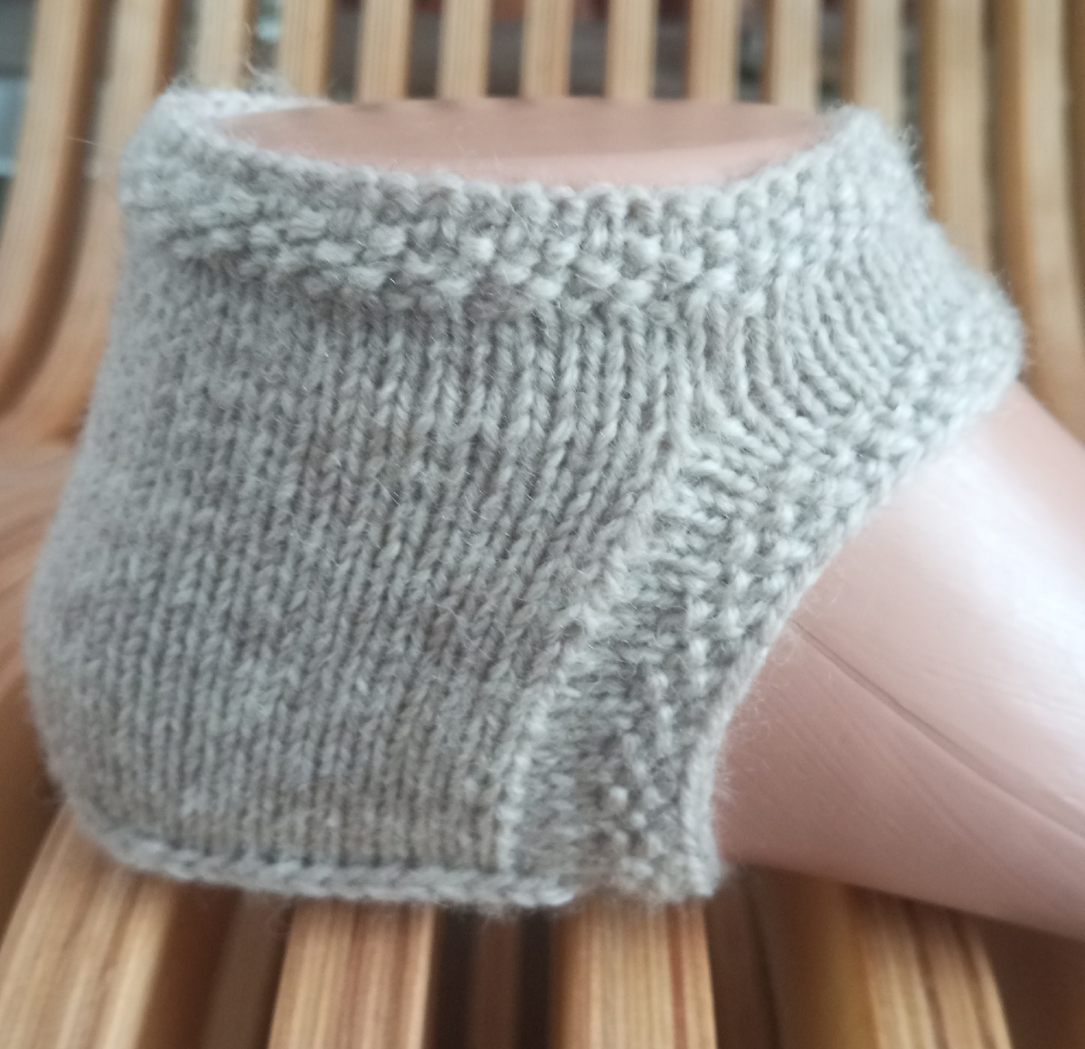 Пятка действительно очень проста в вязании. Тот, кто связал хотя бы один носок такого типа, конечно же, обратил внимание на то, что у этой пятки нет клина подъёма. Но это не делает ее неудобной. Она хорошо сидит на ноге, плотно облегая пятку. Не сползает.