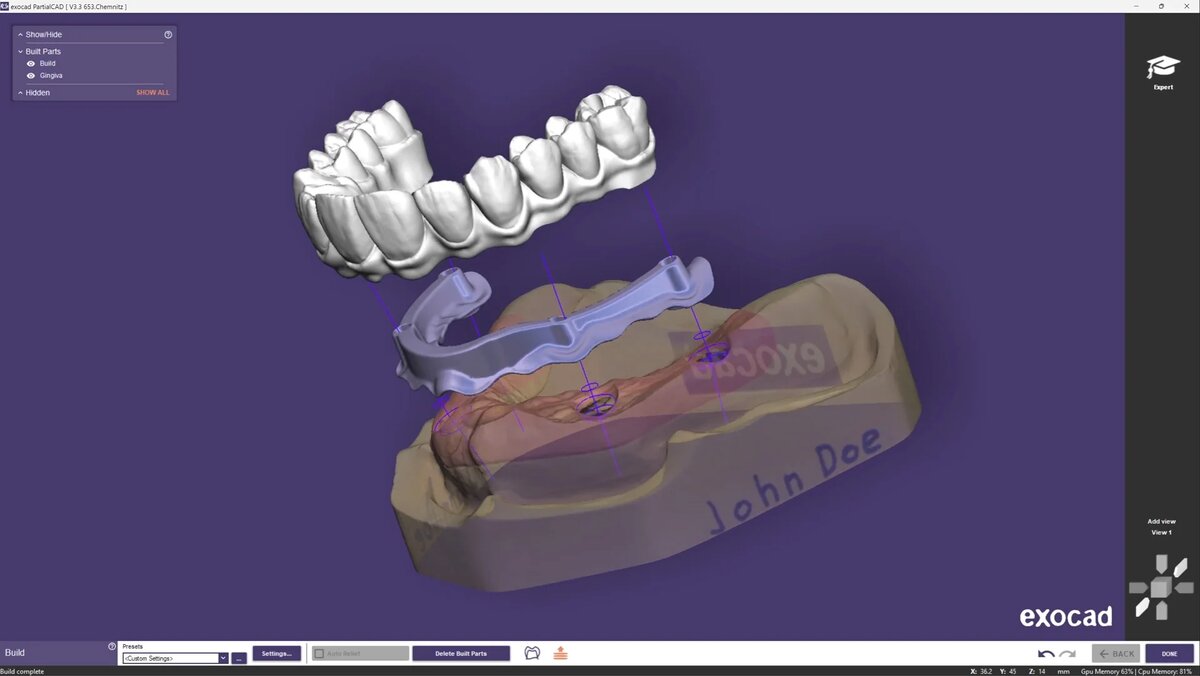 Успеваете следить за обновлениями в цифре? Только недавно мы писали о новом обновлении модуля имплантов в Exocad – и вот компания выпускает новую версию PartialCAD. Обновление нацелено, пожалуй, на одну из самых сложных задач техников – проектирование балочных протезов, где обычно требуется много времени и внимательности. Главное нововведение – функция автоматического разделения протеза (split denture), которая значительно упрощает работу со съемными конструкциями. Теперь рабочий процесс выглядит так: На этом этапе техник работает с имплантами и проектирует опорную часть будущей работы, от которой дальше будет выстраиваться вся система. После этого кейс открывается в PartialCAD. Здесь как раз-таки и включается новая функция. Программа предлагает линии разделения протеза на две части: балку и сам протез с зубами и десной. Для кейсов All-on-X линии разделения предлагаются автоматически, но при необходимости техник может изменить их вручную. После того как конструкция разделена, система с