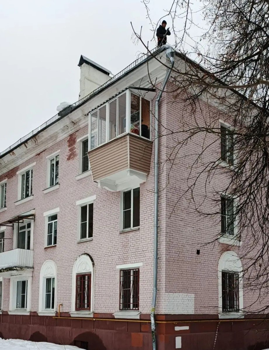 Кровельщик на крыше: в Долгопрудном продолжается борьба со сходом снега и льда