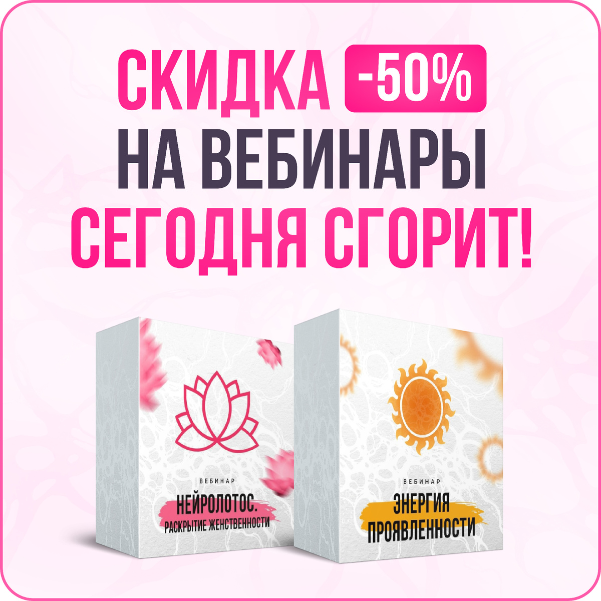 ΠΠ΅Π»Π°Ρ ΠΊΠ°ΠΆΠ΄ΠΎΠΉ ΠΈΠ· Π²Π°Ρ Π²Π΅ΡΠ½Ρ, Π»ΡΠ±Π²ΠΈ ΠΈ ΠΊΡΠ°ΡΠΎΡΡ. ΠΡΠ΄ΡΡΠ΅ Π·Π΄ΠΎΡΠΎΠ²Ρ ΠΈ ΡΡΠ°ΡΡΠ»ΠΈΠ²Ρ β€οΈ ΠΠ°ΠΏΠΎΠΌΠΈΠ½Π°Ρ, ΡΡΠΎ Π² ΡΠ΅ΡΡΡ ΠΏΡΠ°Π·Π΄Π½ΠΈΠΊΠ° ΠΌΡ ΠΏΡΠΈΠ³ΠΎΡΠΎΠ²ΠΈΠ»ΠΈ Π΄Π»Ρ Π²Π°Ρ ΡΠΏΠ΅ΡΠΏΡΠ΅Π΄Π»ΠΎΠΆΠ΅Π½ΠΈΠ΅ β ΠΌΠΈΠ½ΡΡ 50% Π½Π° Π²Π΅Π±ΠΈΠ½Π°ΡΡ Π½Π° ΡΠ°ΡΠΊΡΡΡΠΈΠ΅ ΠΆΠ΅Π½ΡΡΠ²Π΅Π½Π½ΠΎΡΡΠΈ ΠΈ ΠΏΡΠΎΡΠ²Π»Π΅Π½Π½ΠΎΡΡΠΈ. Π£ΡΠΏΠ΅ΠΉΡΠ΅ ΠΈΠΌ Π²ΠΎΡΠΏΠΎΠ»ΡΠ·ΠΎΠ²Π°ΡΡΡΡ! ΠΡΠ΅Π΄Π»ΠΎΠΆΠ΅Π½ΠΈΠ΅ Π΄Π΅ΠΉΡΡΠ²ΠΈΡΠ΅Π»ΡΠ½ΠΎ ΡΠΎΠ»ΡΠΊΠΎ Π΄ΠΎ 23.59 ΠΌΡΠΊ. Π Π°ΠΊΡΠΈΠΈ ΡΡΠ°ΡΡΠ²ΡΡΡ: