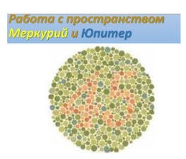 На картинке: Меркурий видит много мелких элементов разных цветов, а Юпитер все видит крупным планом - круг и цифра 45