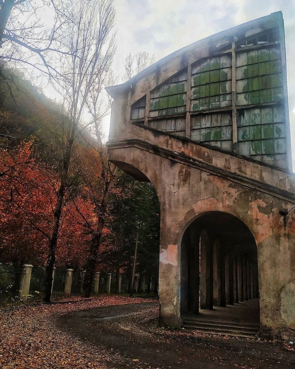 Это руины арены имени Темура Маградзе в городе Чиатура, Грузия. Вернее, как руины... В 1991-м году после землятресения стадион сильно пострадал, но его по прежнему использует местная одноименная команда ФК Чиатура. Смотрится эпично стадион, конечно. Брутально выглядят эти серые и сырые арки и галереи, ступени поросшие мхом. Так и чувствуешь, что кто-то из Ста́рков нападет с мечом из-за угла! Причём, его вместимость на время постройки (середина 1960-х) была более 11 тысяч при количестве жителей в городе не более 15-ти. ФК Чиатура сейчас играет в пятой грузинской лиге, хотя в 90-х дважды заскакивали в элиту. Да и в советские времена они побеждали и в чемпионате Грузинской ССР и Кубке Республики. Стадион носит имя Темура Маградзе — местного бывшего футболиста, выступавшего в 60-70-х на позиции полузащитника в «Динамо» (Тбилиси) и «Дила» (Гори). ⚽️ Подписывайтесь на нас в MAX