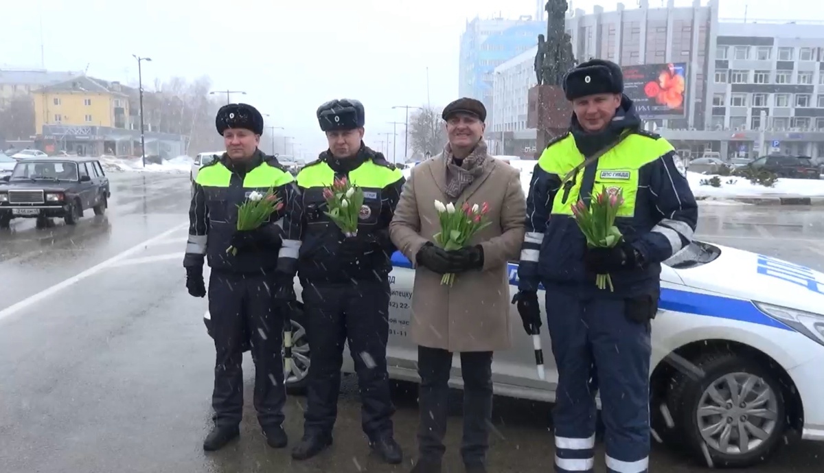 Дорожные полицейские поздравили липецких автоледи с наступающим 8 Марта
