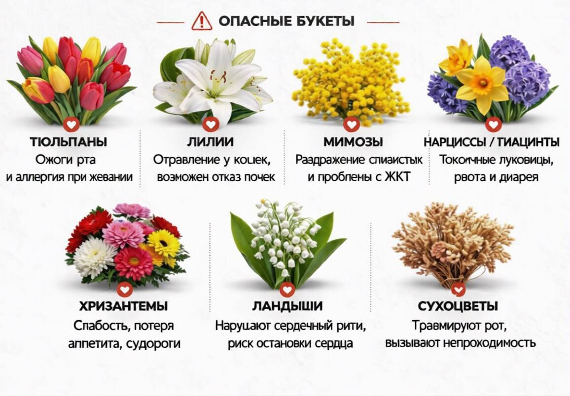 💐Скоро 8 Марта — время выбирать букеты, а заодно вспомнить о безопасности наших котиков.