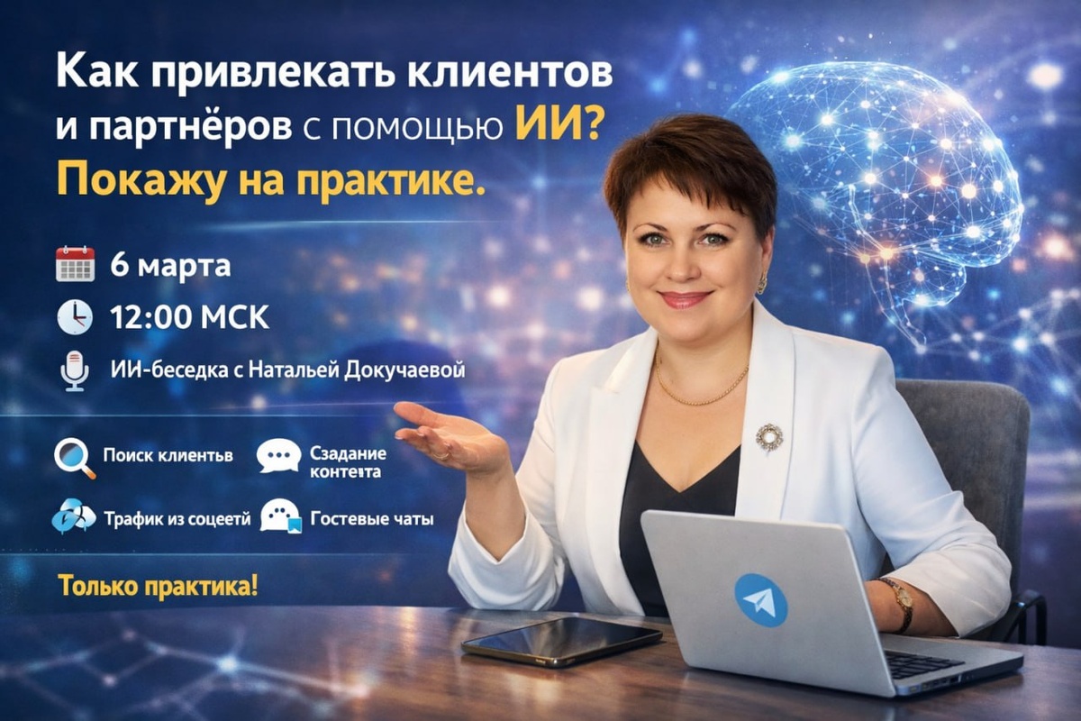 📅 6 марта 🕛 12:00 МСК 🎙 ИИ-беседка с Натальей Докучаевой Сегодня многие задают один и тот же вопрос: где брать трафик и новых людей для бизнеса? Можно продолжать писать десятки сообщений вручную… а можно использовать возможности приложения Океу и делать это быстрее, системнее и легче. На ИИ-беседке покажу: 💡 Как использовать Океу для поиска клиентов и партнёров 💡 Как создавать тексты и сообщения, которые привлекают внимание 💡 Как находить трафик через соцсети и комментарии 💡 Как мягко переводить людей в гостевые чаты 💡 Как выстроить простую систему, которая работает каждый день Без сложной теории. Только практические шаги, которые вы сможете применить сразу. Если вы хотите, чтобы 📈 люди сами интересовались вашим предложением и поток новых контактов стал стабильным, — обязательно подключайтесь. ⏰ 6 марта | 12:00 МСК 🔗 Вход на эфир: https://us06web.zoom.us/j/82087687539?pwd=LCfYhEKeFSZ06b3tYolk4Tz1YHSekC.1 💬 Приходите на эфир — покажу, как сделать ИИ вашим помощником