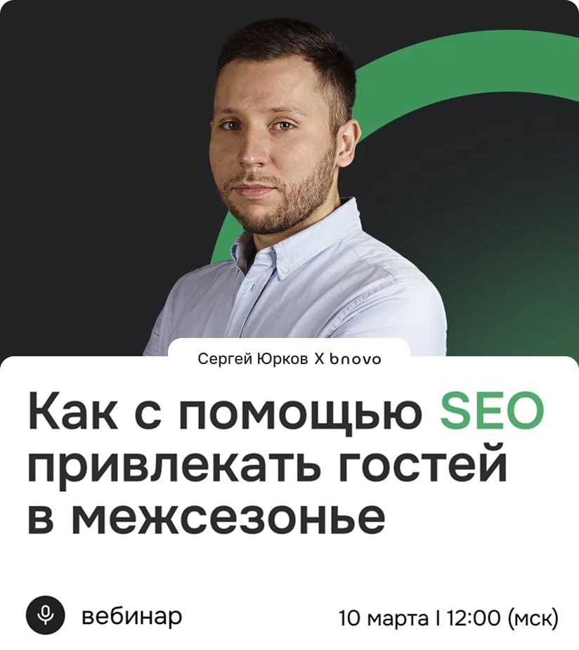 ✅ Именно эту тему я раскрою на вебинаре 10 марта в 12:00 мск. 📢 О чем мы поговорим: - Как анализировать поисковые запросы и сегментировать аудиторию - Определим структуру и важные страницы сайта отеля на основе анализа конкурентов - Примеры посадочных страниц, статей для блога и ключевых слов в период низкого спроса - Стратегия продвижения, которая помогает привлекать целевых гостей из ближайших районов ⌨️ А также разберем все это на практике и изучим новые инструменты, которые сильно упрощают эти процессы. 🎁 Регистрация на вебинар бесплатная, а в конце всех ждет небольшой подарок. 👉🏼 Зарегистрироваться можно по ссылке: https://clck.ru/3SJWwn Сайт | Кейсы и отзывы | YouTube | Написать нам 🤝