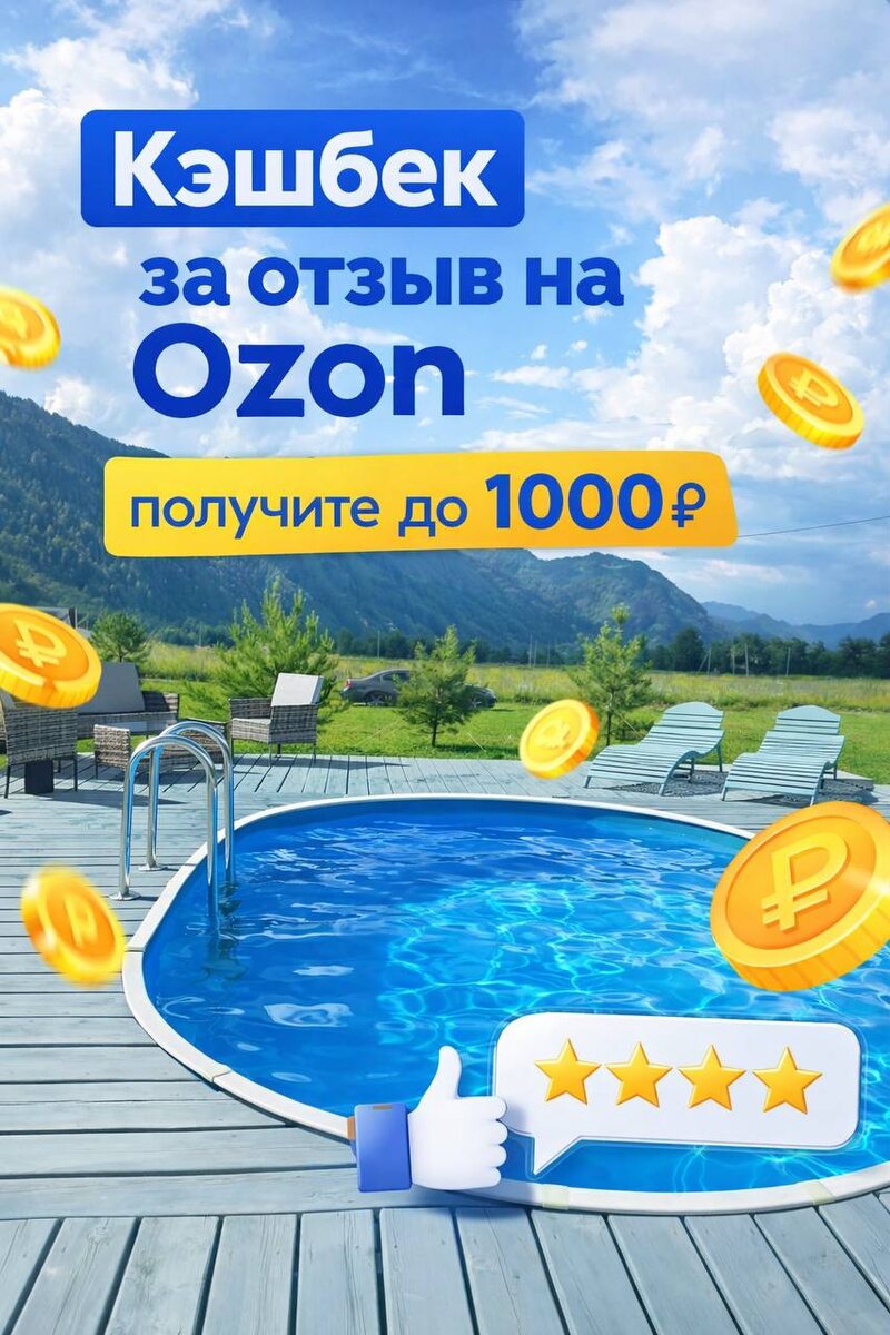 Запускаем акцию: получите кэшбек за отзыв о покупке бассейна ЛАГУНА и ГИГАБАСС на площадке Ozon