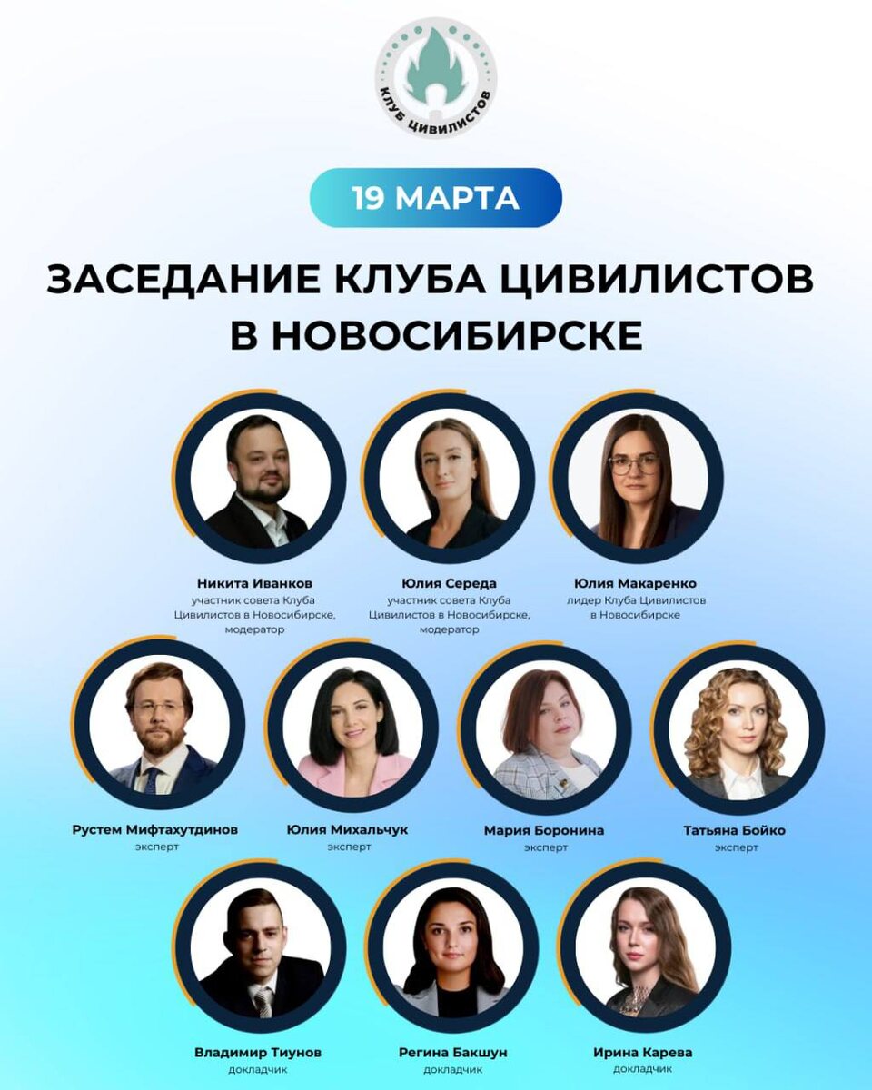 ! 📆 Друзья, мы рады анонсировать тематику новой встречи в Новосибирске в очном формате! Она пройдет 19 марта и будет посвящена теме «Преимущественное право: банкротство, корпоративные конфликты и новые механизмы регулирования на примере судебных кейсов». Вход — свободный по предварительной регистрации! Обсуждение будет разделено на два основных блока: 1️⃣ Преимущественное право в торгах в рамках процедуры банкротства 2️⃣ Новые правила и сложные конструкции в корпоративном праве 💥Состав участников дискуссии обещает быть мощным и многочисленным: присоединиться онлайн в качестве экспертов к нам планируют Рустем Мифтахутдинов, Юлия Михальчук, Мария Боронина и Татьяна Бойко! ☝️ Модераторы — Никита Иванков и Юлия Середа. 📍Докладчики мероприятия — Владимир Тиунов, Регина Бакшун, Ирина Карева и Лариса Тараненко. 📎 Подробная информация о мероприятии, программе и окно регистрации – на страничке мероприятия: На сайт 💬 Координация встреч и дополнительная информация – в чате Клу