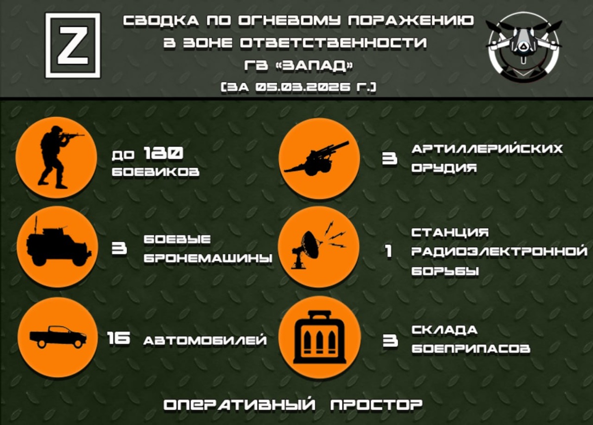 Сводка по огневому поражению в зоне ответственности ГВ «Запад» за 05.03.2026 г
