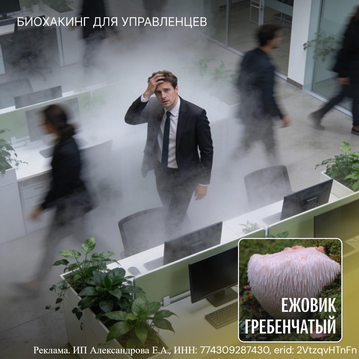 Новая тема в рубрике «Биохакинг для управленцев» от FUNGILINE — команды, которая переводит научные знания в прикладные решения для энергии, фокуса и устойчивости предпринимателей. Если пропустили предыдущие материалы про стресс и сохранение энергии, советуем взять на заметку. Эксклюзивно для Клуба директоров. Бывало такое: 🔘забываете простое слово прямо в середине разговора 🔘смотрите на экран и не понимаете, что читаете 🔘перечитываете один и тот же абзац несколько раз, а смысл не складывается Для предпринимателя это не мелочь. Это прямая угроза качеству решений. 🧠 Такое состояние называют brain fog — «туман в голове». Это состояние когнитивной усталости, при котором мысли вязнут, внимание ускользает, а привычные задачи требуют вдвое больше усилий. Почему это происходит❓ Причины довольно приземленные и знакомые всем: 🔘хронический стресс 🔘высокая когнитивная нагрузка 🔘сбитый режим сна 🔘недостаток полноценного восстановления Всё это напрямую бьёт по нервной системе: ⬇️ на
