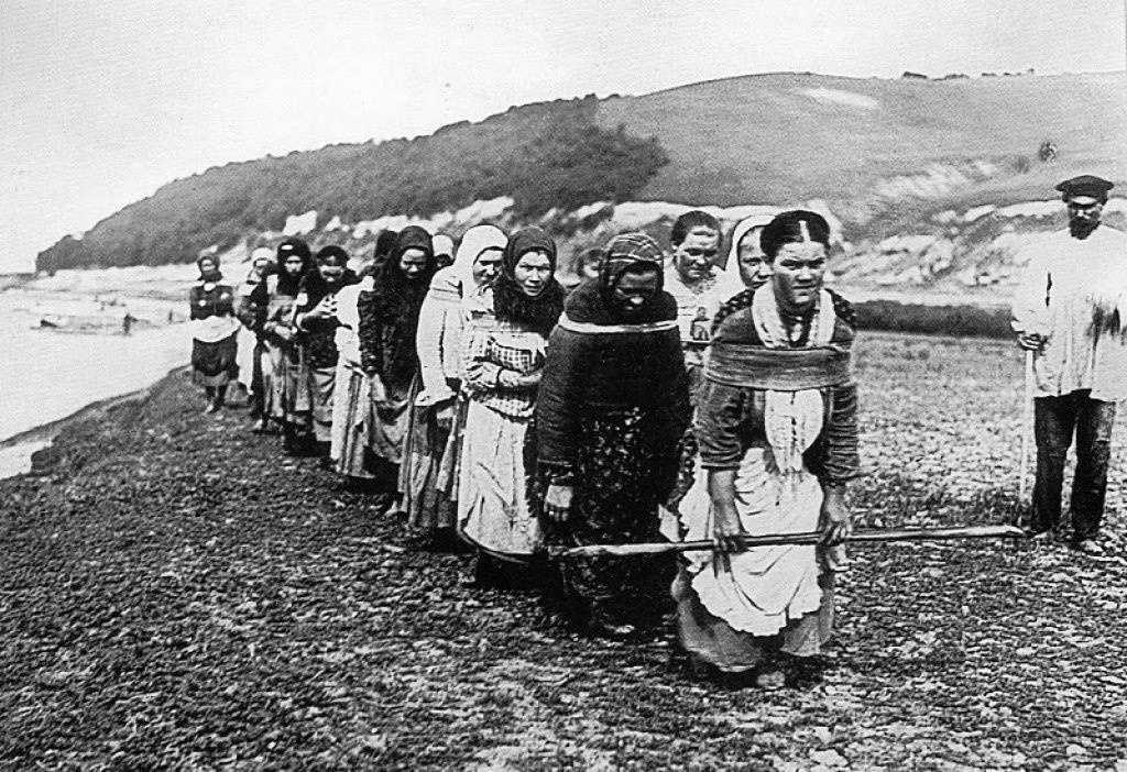 😥 1 фото: "Женщины-бурлачки тянут баржу на реке Суре в Нижегородской губернии" (1910 г, фотограф З.З.Виноградов. Из фондов МАММ/МДФ) 2 фото - Волга. 1912 г., тоже Захар Виноградов (1882-1963 гг.), хранится в фонде Государственного исторического музея в Москве. Решила написать подробнее. Бурлацкий труд, несмотря на то, что принадлежал к числу тяжелейших, был работой не только мужчин, но и женщин. Женские артели формировались по тому же принципу, что и мужские бригады, но если на каждые 1000 пудов перевозимого груза судовладелец обязан был взять на работу трёх мужчин, то женщин - пять. Численность женской артели могла быть от 4 до 40 человек. Несмотря на то, что женщины-бурлаки отрабатывали по 19 часов в сутки, оплата их труда была ниже, чем мужского. Во-первых, женщины иногда намеренно сбивали цену за свой труд, поскольку стремились выиграть в конкурентной борьбе с Репост из источника