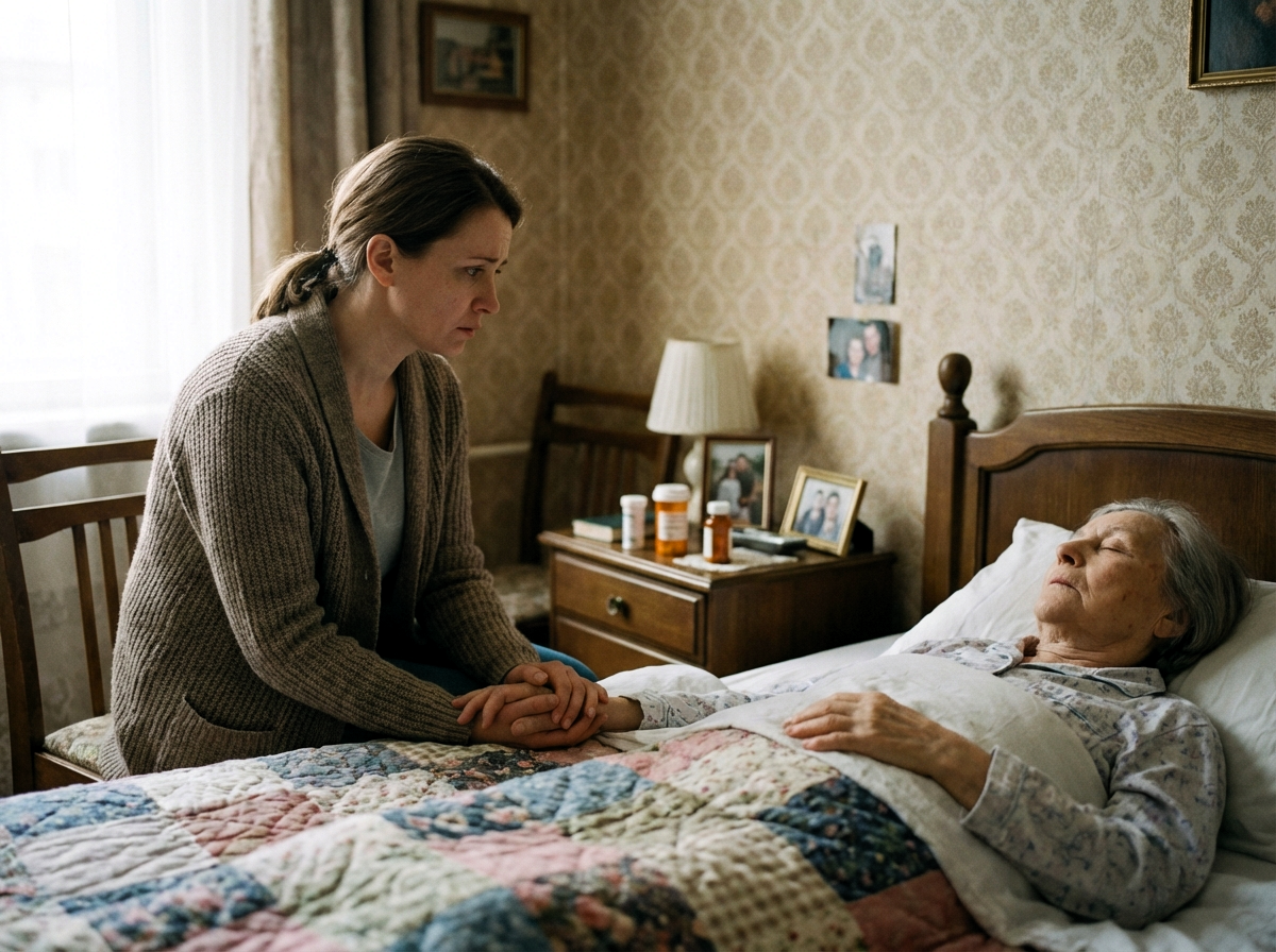 Полина просидела рядом до вечера. Держала мать за руку, поправляла одеяло, поила водой. Мать говорила мало, больше смотрела. Смотрела и плакала без слёз.