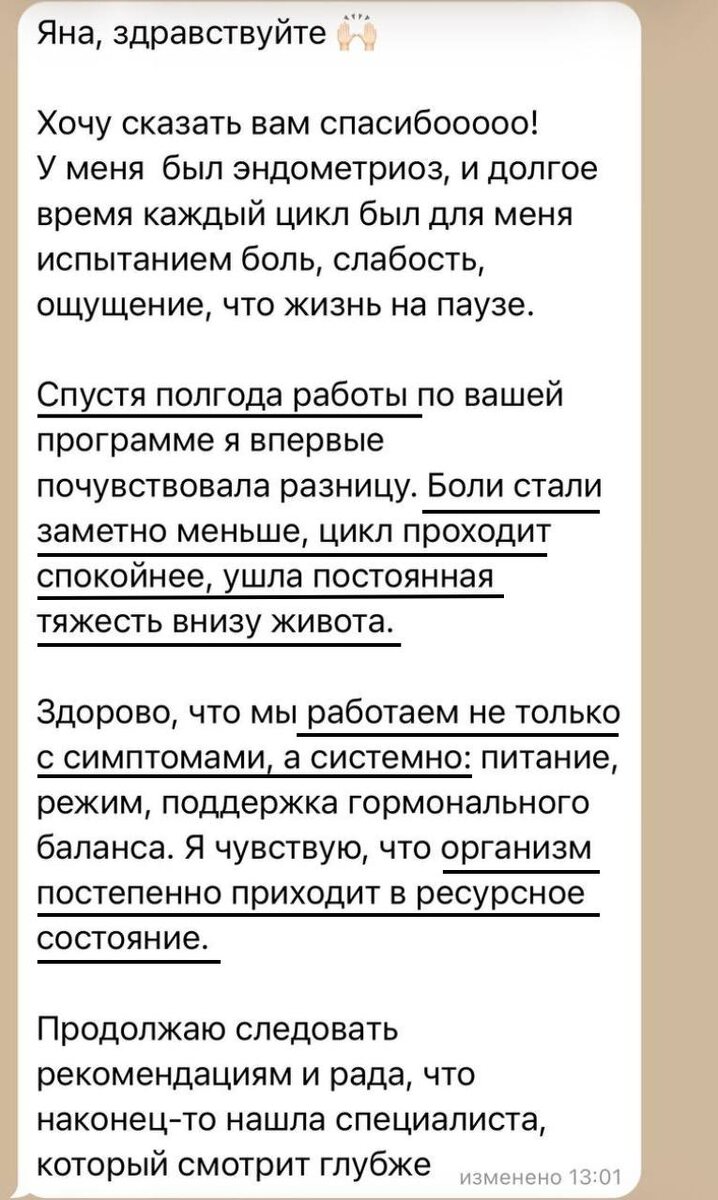 ➡️ Продолжаю получать восторженные отзывы от своих клиенток и восхищаюсь тому, как всего за полгода комплексной работы нам удалось убрать симптомы эндометриоза 😖: