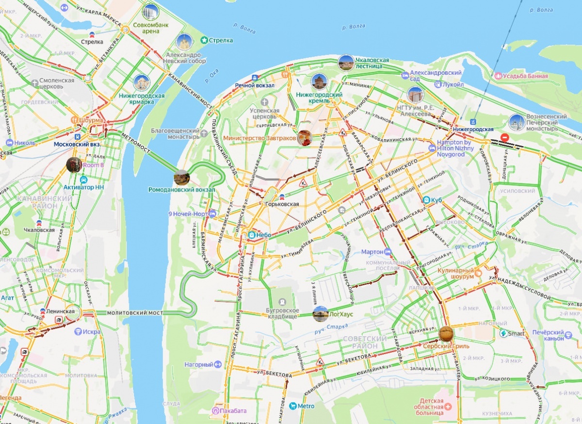 Восьмибалльные пробки образовались на улицах Нижнего Новгорода вечером 5 марта. Информация появилась на сервисе «Яндекс. Карты». Серьезные заторы наблюдаются на улицах Белинского, Ванеева, Салганской, Большой Покровской, Звездинке, Большой Печерской, Варварской, Алексеевской, Лысогорской, Горной и Бекетова, а также на проспекте Гагарина. В Заречной части города движение затруднено на проспекте Ленина, Комсомольском шоссе, улицах Дьяконова, Федосеенко, Ярошенко, Краснодонцев, а также в районе железнодорожного вокзала. Ранее сообщалось, что виновнику ДТП со школьниками отказали в УДО в Нижнем Новгороде. Самые интересные и срочные новости читайте в Telegram-канале «В городе N»
