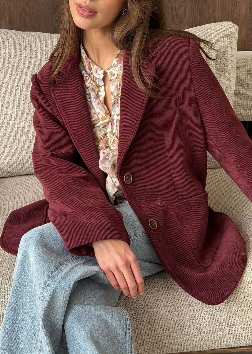 ❤️ Влюбились в это сочетание на сегодняшней съёмке и спешим поделиться с вами: - велюровый пиджак в винном оттенке; - цветочная блуза Nina; - голубые джинсы. А как вам образ, поделитесь своим мнением ⤵️