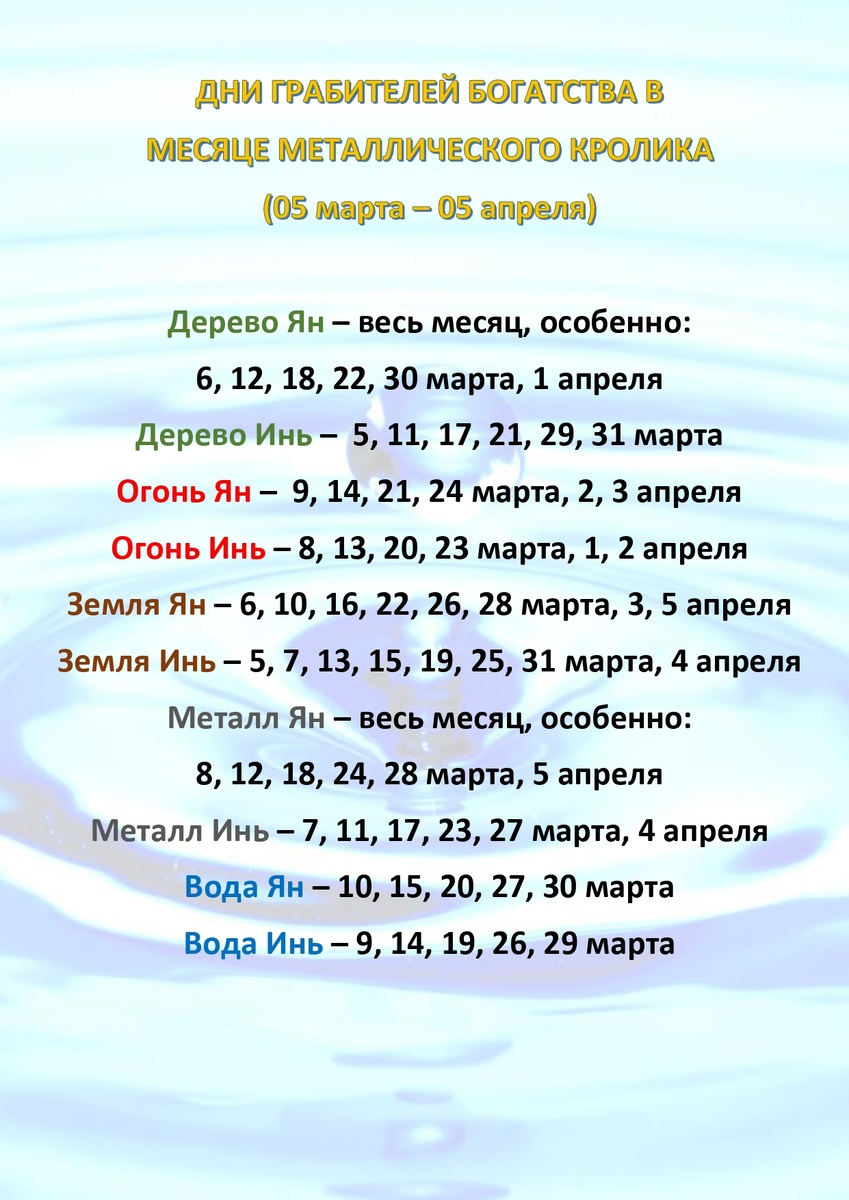 Дни Грабителей Богатства в месяце Металлического Кролика (05.03.26 - 05.04.26)